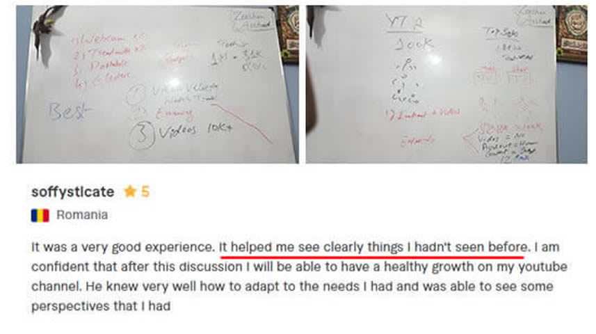 It was a very good experience. It helped me see clearly things I hadn't seen before. I am confident that after this discussion I will be able to have a healthy growth on my youtube channel. He knew very well how to adapt to the needs I had and was able to see some perspectives that I had.